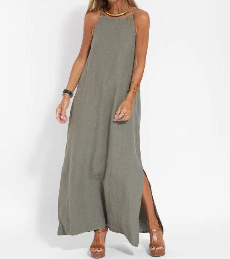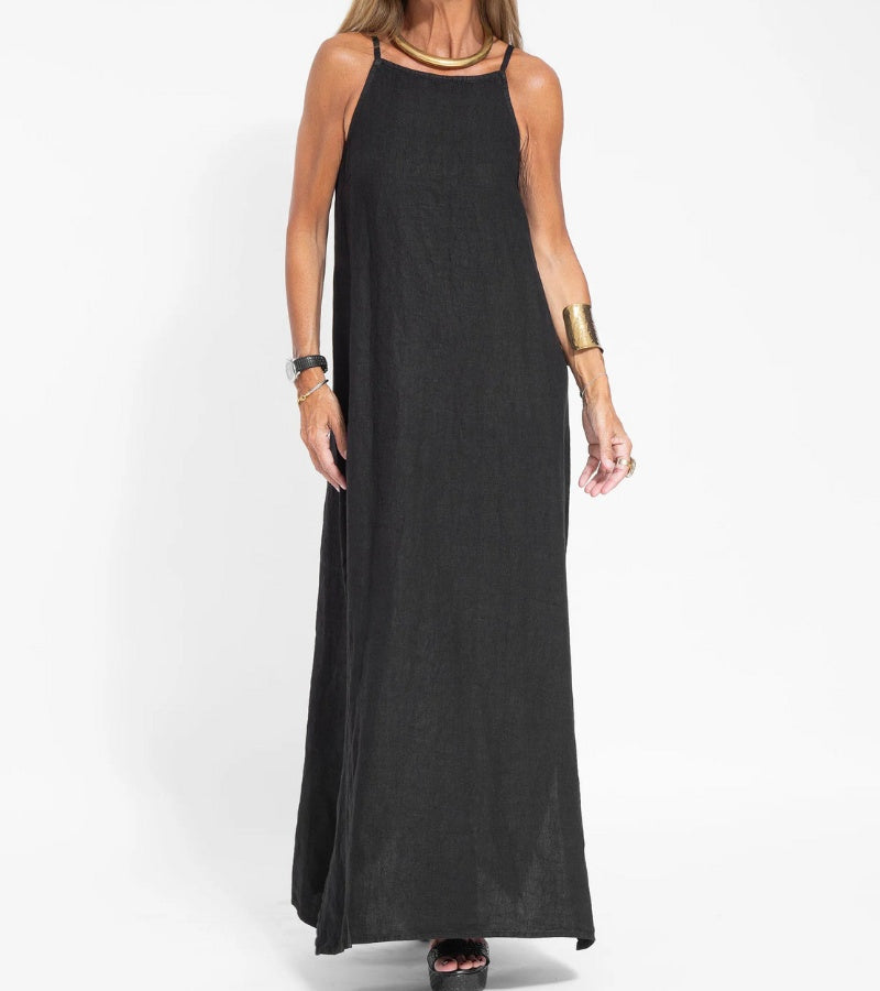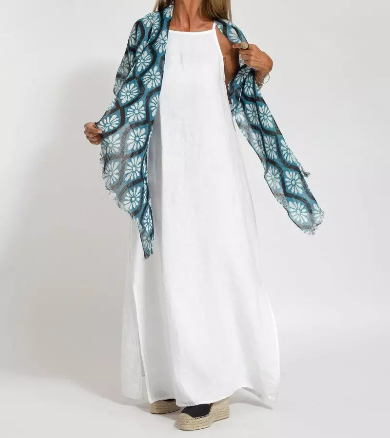 Ontdek de natuurlijke verfijning van deze lange jurk van katoen en linnen, perfect voor warme dagen. De ruime en vloeiende snit garandeert comfort en vrijheid van beweging, terwijl de elegante details een chique touch toevoegen. Gemakkelijk te combineren, het is het ideale kledingstuk voor elke zomerse gelegenheid. Een must-have in de seizoensgarderobe.